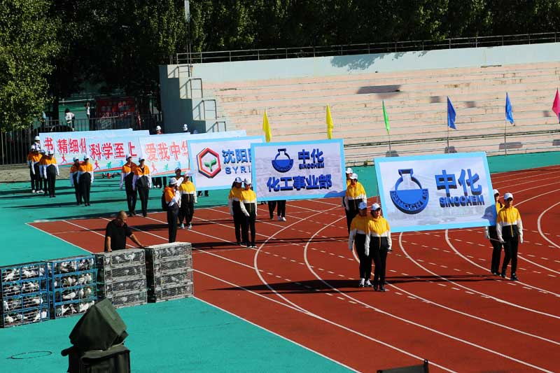 開(kāi)幕式上,6名護(hù)旗手高擎鮮艷的五星紅旗首先入場(chǎng)。中化LOGO方隊(duì)、中化化工事業(yè)部LOGO方隊(duì)、沈陽(yáng)院LOGO方隊(duì)以及標(biāo)語(yǔ)方隊(duì)跟隨國(guó)旗方隊(duì)依次入場(chǎng)。生物與醫(yī)藥所代表隊(duì)、化工安全代表隊(duì)、化工新材料所代表隊(duì)、新材料公司代表隊(duì)、沈化測(cè)評(píng)代表隊(duì)、新紀(jì)公司代表隊(duì)、科創(chuàng)公司代表隊(duì)、設(shè)計(jì)工程公司代表隊(duì)、中化農(nóng)業(yè)遼寧代表隊(duì)、職能部門(mén)代表隊(duì)等10支代表隊(duì),邁著整齊的步伐通過(guò)主席臺(tái),向現(xiàn)場(chǎng)觀眾致敬。