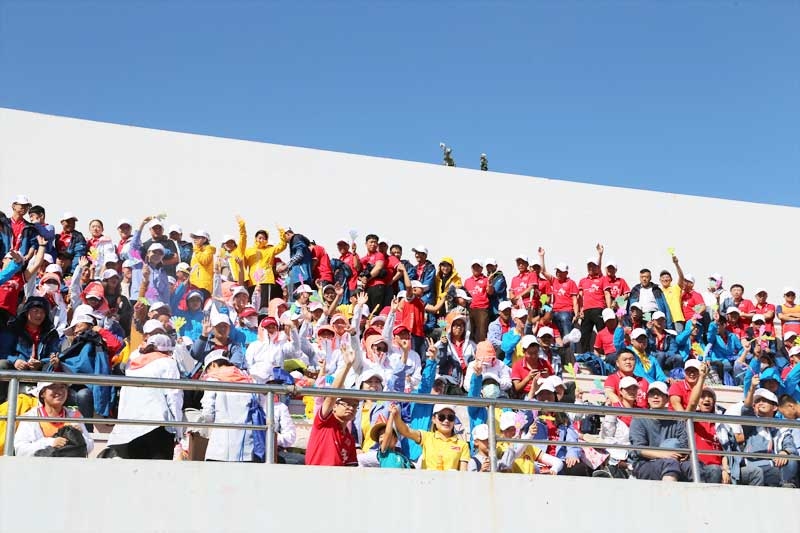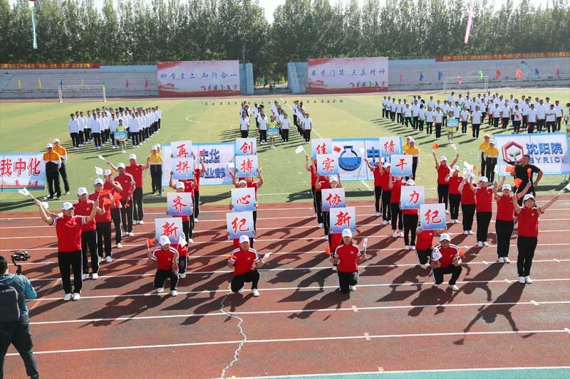 當(dāng)胥維昌院長(zhǎng)宣布運(yùn)動(dòng)會(huì)開(kāi)幕后,七色彩煙在碧空中瞬間綻放,1000尾和平鴿子奮飛藍(lán)天,1000個(gè)彩色氣球把運(yùn)場(chǎng)場(chǎng)裝點(diǎn)成歡樂(lè)的海洋。10個(gè)方隊(duì)、360名方隊(duì)隊(duì)員,共同獻(xiàn)上健美操表演《干就完了》。沈陽(yáng)院180名青年員工獻(xiàn)上隊(duì)形變換表演——《興化報(bào)國(guó)》,他們用手中的彩旗,拼接出沈陽(yáng)院的LOGO——苯環(huán),昭示著沈陽(yáng)院的科研工作蓬勃興旺,沈陽(yáng)院的科研事業(yè)后繼有人。在歌曲《站起來(lái)》結(jié)束后,沈陽(yáng)院13名員工獻(xiàn)上龍鼓表演——《盛世歡歌》,表達(dá)此生無(wú)悔入華夏、盛世龍騰頌歡歌的壯志豪情。