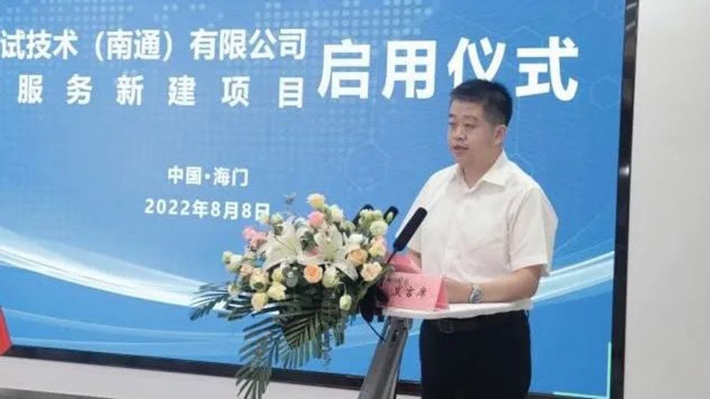 致辭后,在熱烈的掌聲中,李彬副會長和沈旭東區(qū)長共同為測評南通測試服務新建項目揭牌。儀式結束后,與會嘉賓共同參觀了新建實驗室。