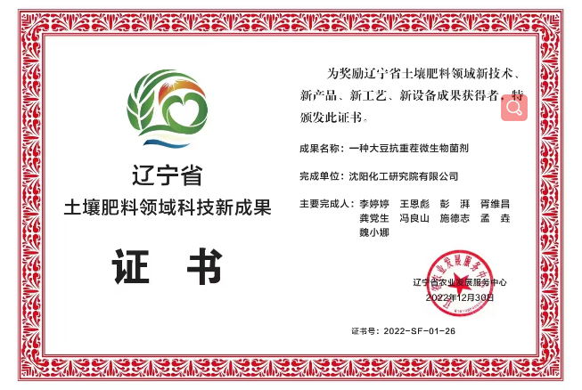日前,沈陽(yáng)院生物所土壤修復(fù)團(tuán)隊(duì)自主研發(fā)的大豆抗重茬微生物菌劑,獲得了遼寧省土壤肥料領(lǐng)域科技新成果證書(shū)。該產(chǎn)品可有效改良重茬土壤,增加重茬作物產(chǎn)量。該成果不但解決了目前大豆根際土壤質(zhì)量變差的問(wèn)題,還顯著延長(zhǎng)了微生物菌劑的保質(zhì)期。生物所土壤修復(fù)團(tuán)隊(duì)依托微生物產(chǎn)品研發(fā)平臺(tái),以土壤障礙因素診斷技術(shù)為根本,以綠色微生物肥料開(kāi)發(fā)為方向,現(xiàn)已開(kāi)發(fā)出4個(gè)系列綠色微生物菌劑產(chǎn)品,并系統(tǒng)解決了菌劑產(chǎn)品效果不穩(wěn)定、貨架期短等問(wèn)題。
