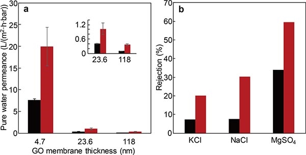 膜的水通量與對鹽的截留。圖片來源:Nano Lett.