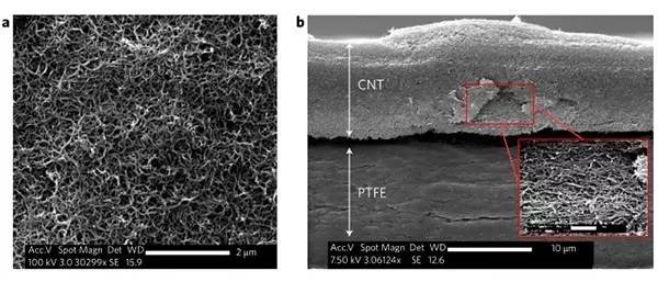 碳納米管-聚乙烯醇膜的SEM圖像。圖片來源:Nature Nanotech.