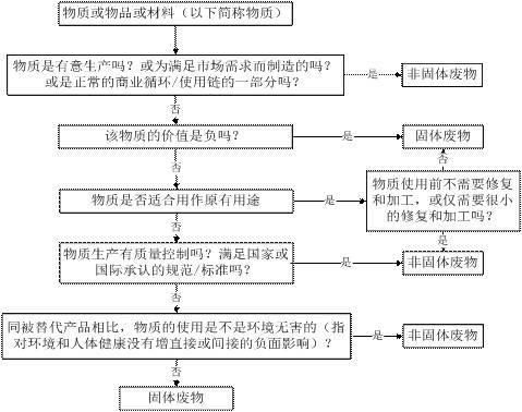 導(dǎo)則第三部分列出了“固體廢物與非固體廢物判別流程圖”(見圖1),該“流程圖”有5層判斷項(xiàng),其中有4個(gè)判斷項(xiàng)可以得出“非固體廢物”的屬性。其中在第2項(xiàng)判斷為“有價(jià)值”的基礎(chǔ)上的后續(xù)3個(gè)判斷,可以看做對(duì)于廣義價(jià)值的選擇和控制。即“基本保留原有用途的價(jià)值+符合相關(guān)產(chǎn)品標(biāo)準(zhǔn)+可直接用作替代產(chǎn)品,且使用過程環(huán)境無害”。