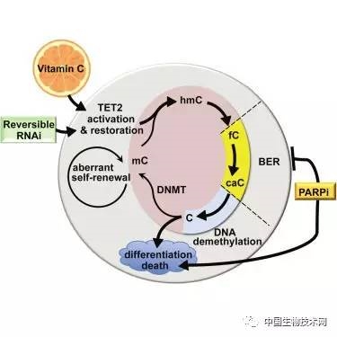 研究人員發(fā)現(xiàn),將維生素C和PARP抑制劑結(jié)合可以增強對白血病干細胞的作用,使它們從自我更新轉(zhuǎn)向成熟和細胞死亡。研究結(jié)果還表明,維生素C也可以驅(qū)使沒有TET2突變的白血病干細胞走向死亡,因為它能提升任何正常的TET2活性。